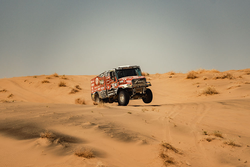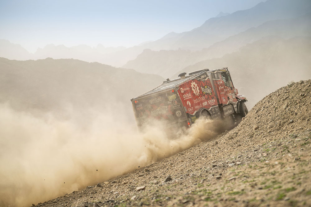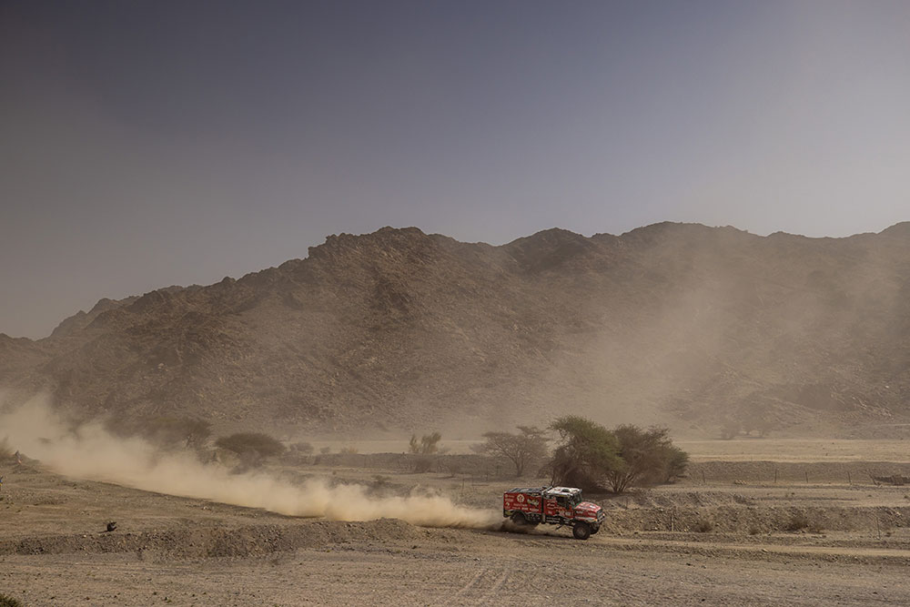 Red Dragon měl za sebou skvělou sérii, když v předchozích dnech ovládl tři etapy po sobě a výrazně stáhl náskok lídra Vaidotase Žaly. Dvanáctá etapa ale přinesla komplikace – v náročných dunách se kamion dostal do problémů a skončil na boku, přičemž s návratem zpět do závodu pomohl jeden ze soupeřů.